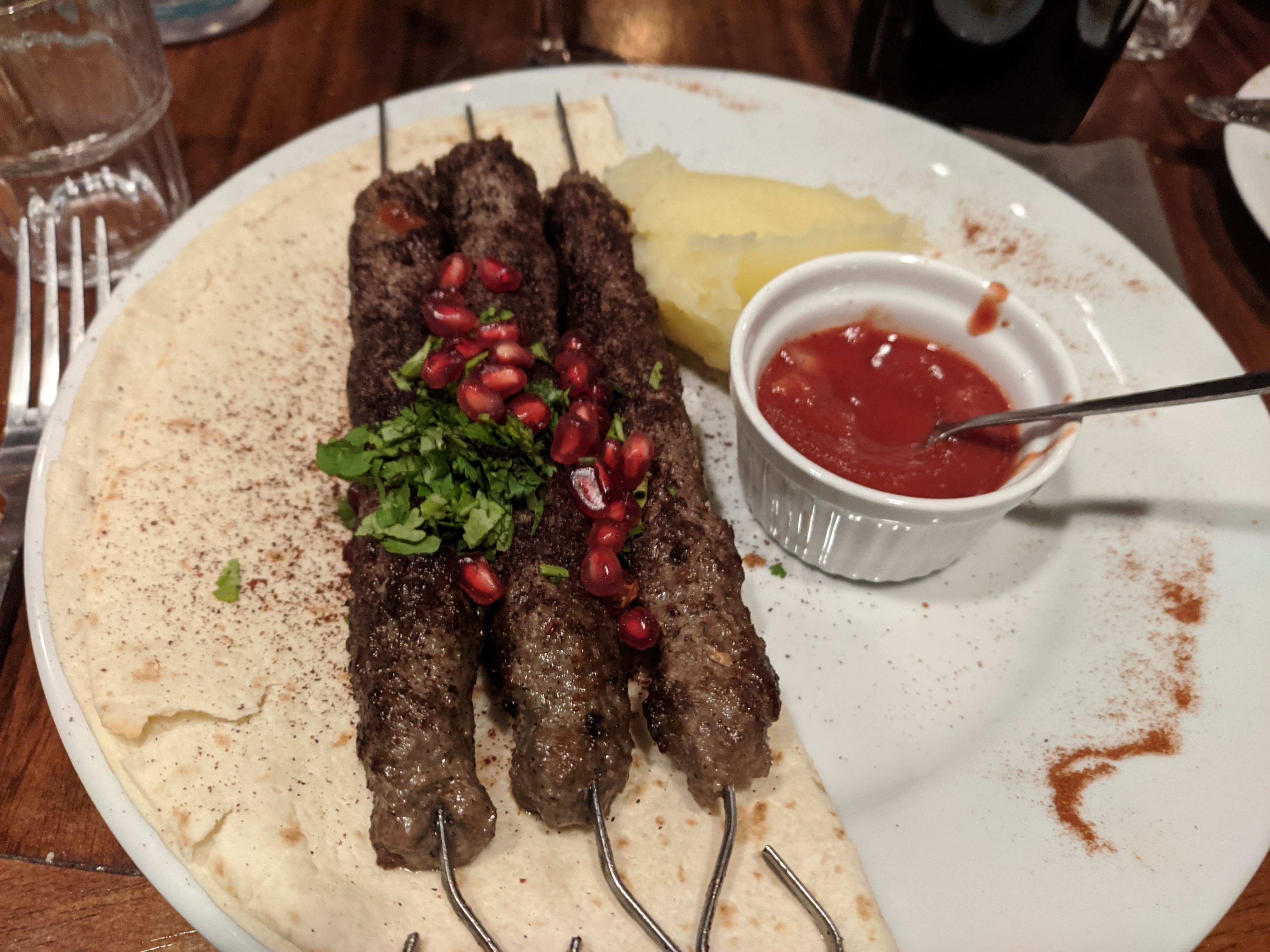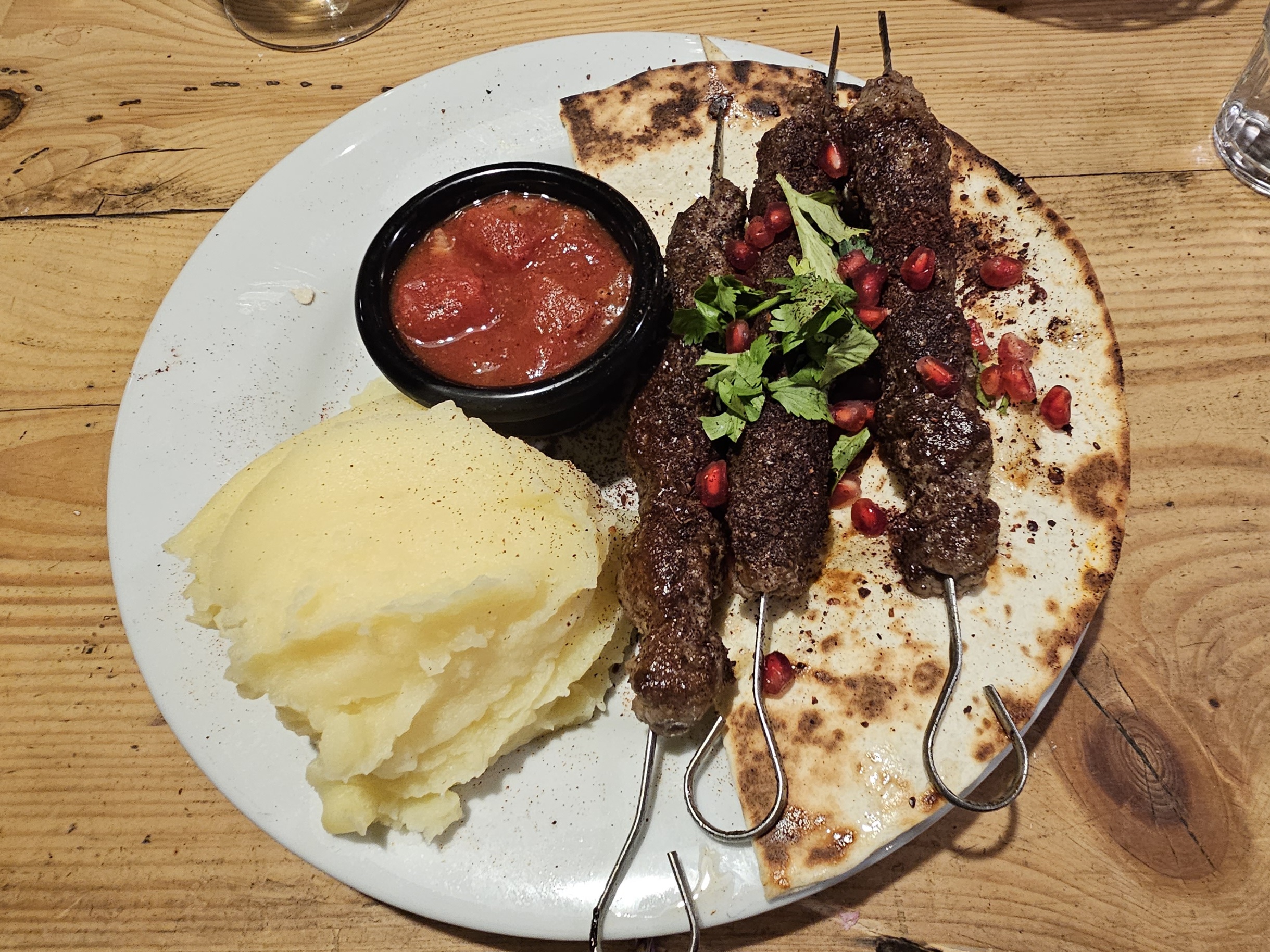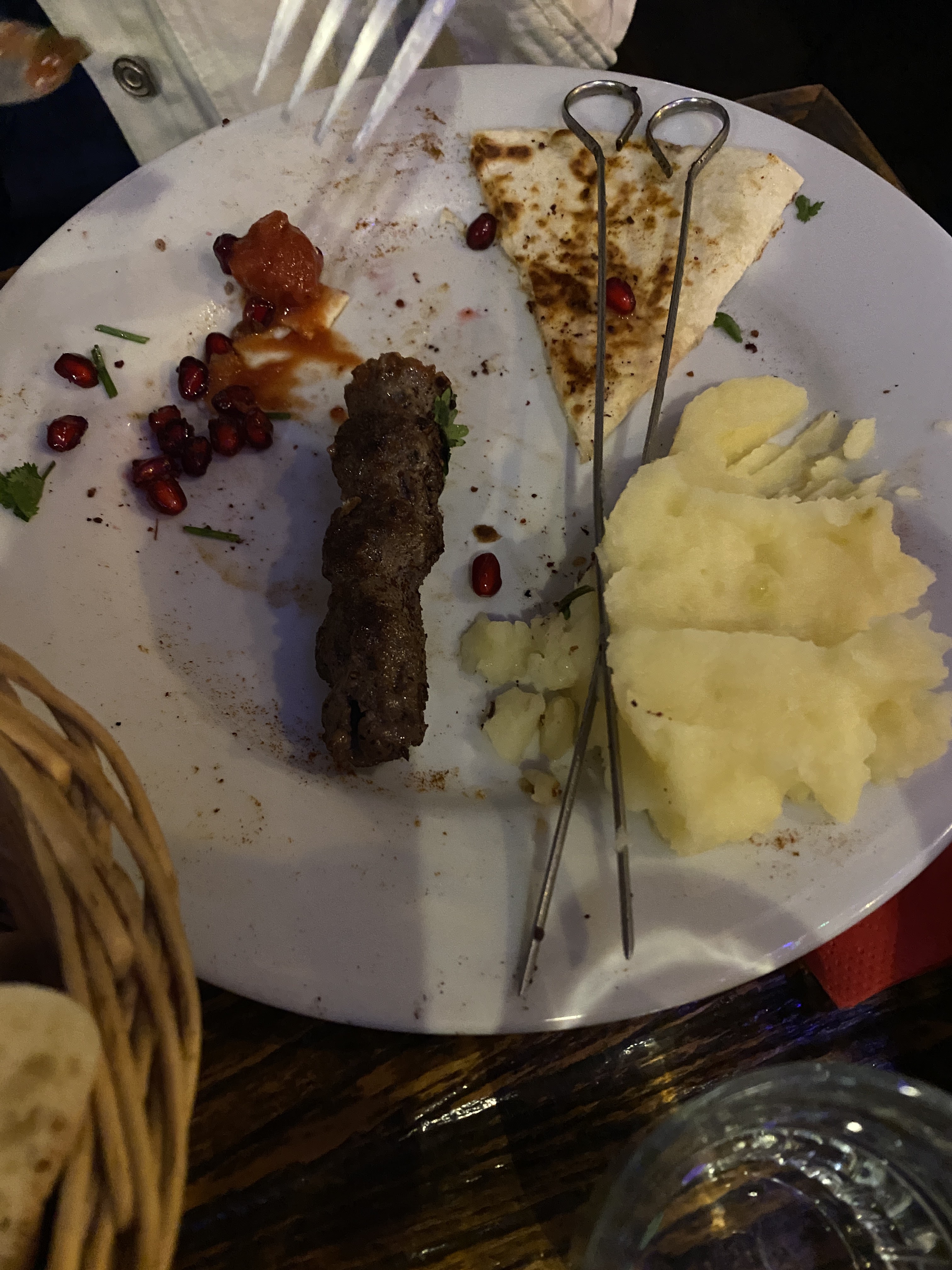 La cuisine manque de finesse : une viande trop grasse et pleine d’os, accompagnée uniquement de grenades et de poivrons peu savoureux et secs. Plusieurs plats étaient déjà en rupture à 20h, ce qui est regrettable. L’accueil aurait pu être plus chaleureux de la part d’une des serveuse, même si l’ambiance a été rehaussée par d’autres membres du personnel. Une expérience globalement décevante que je ne recommanderais pas.