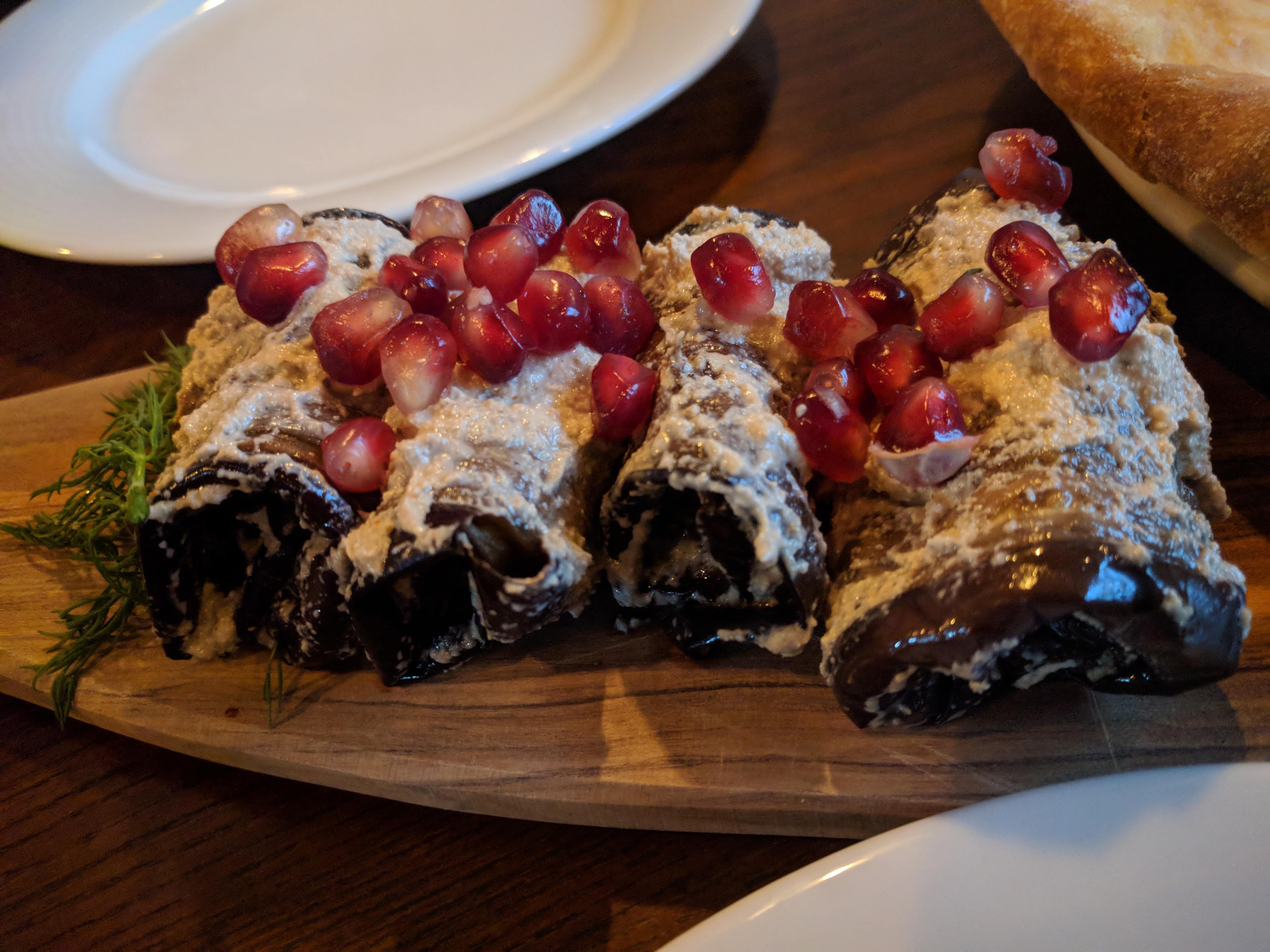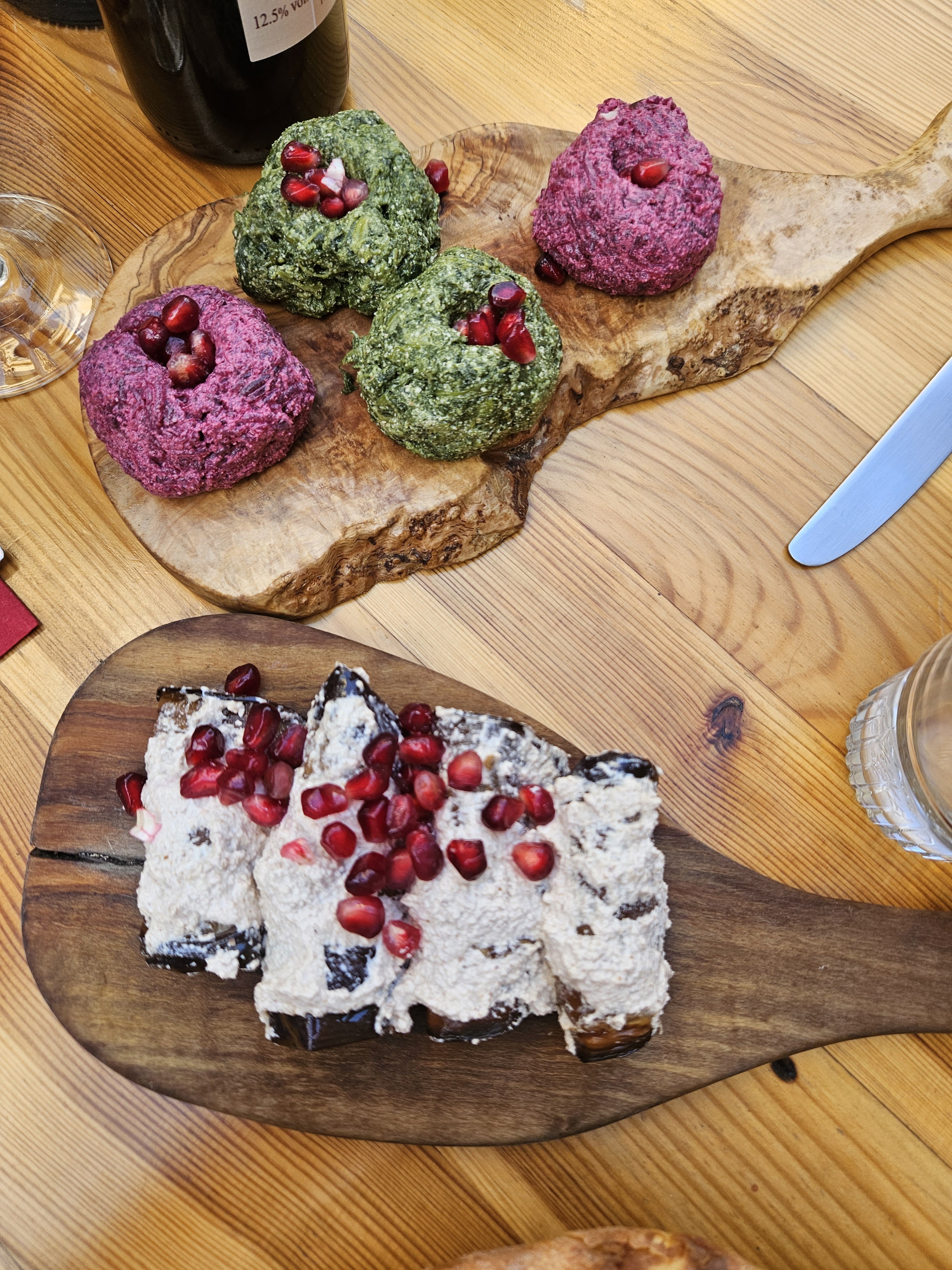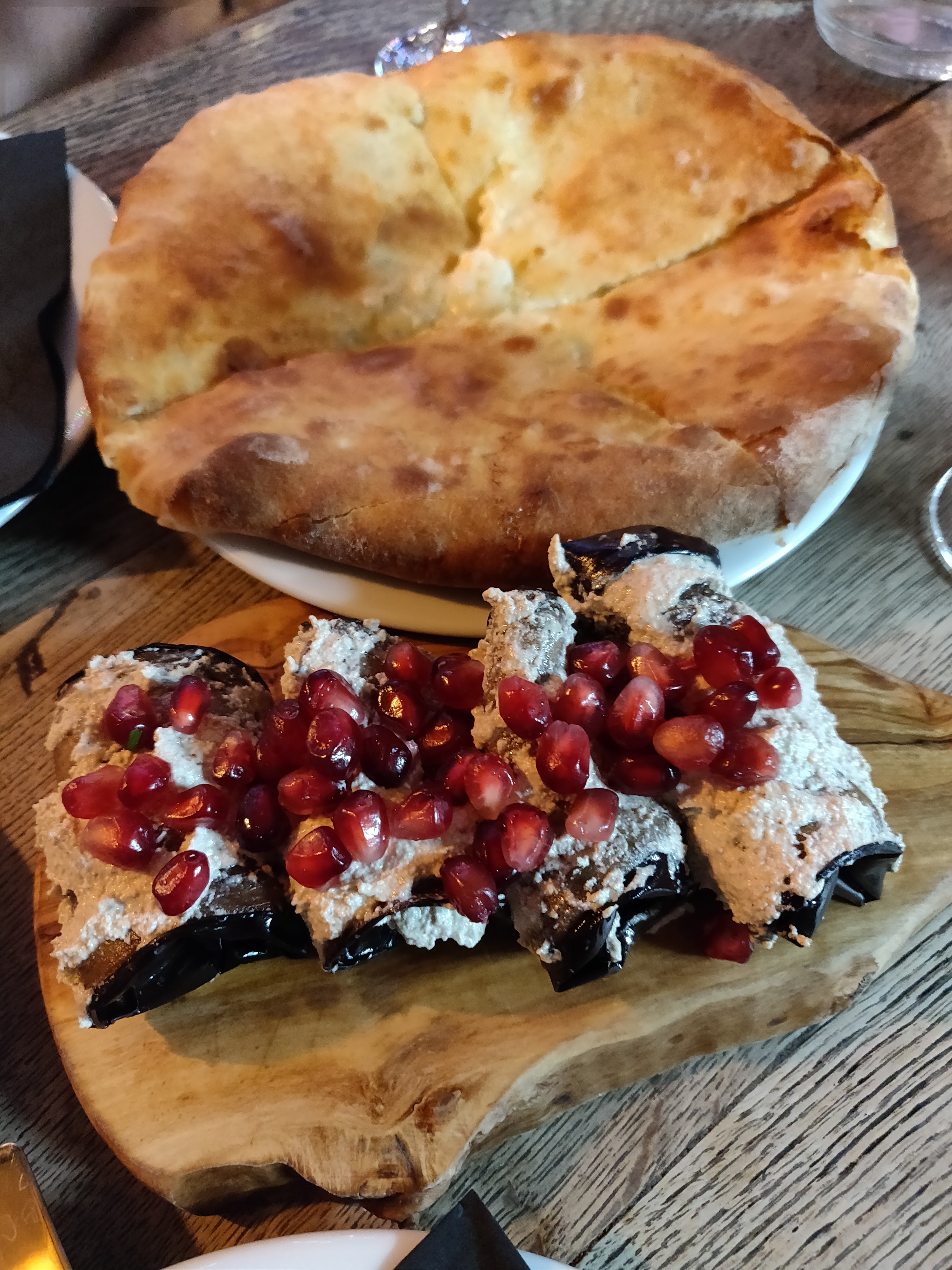 On a très bien mangé, notamment les entrées aux aubergines et le khatchapouri. Ce qui est bizarre, c'est qu'on a bu un vin orange qui nous a beaucoup plu. J'en ai acheté une bouteille et c'est imbuvable. Ça a un goût infâme. Donc bémol sur le côté caviste de l'affaire.