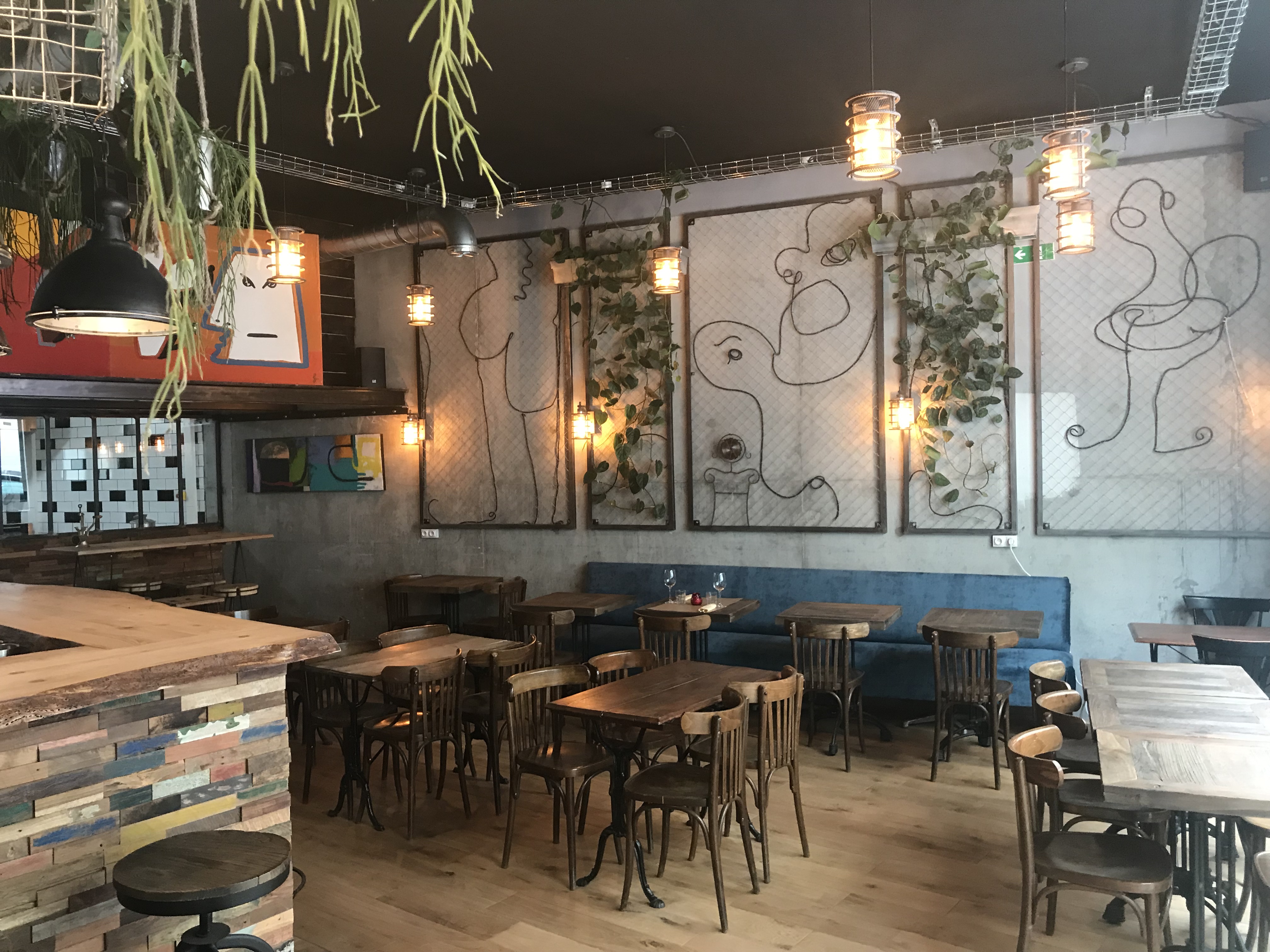 Presque devenu notre cantine ! Un réel intérêt pour la cuisine géorgienne et son vin, un plus pour le vin ambré, à découvrir! L'ambiance décalée faite de juxtaposition d''objets et surtout de peintures d'artistes géorgiens à voir si pas déjà fait !