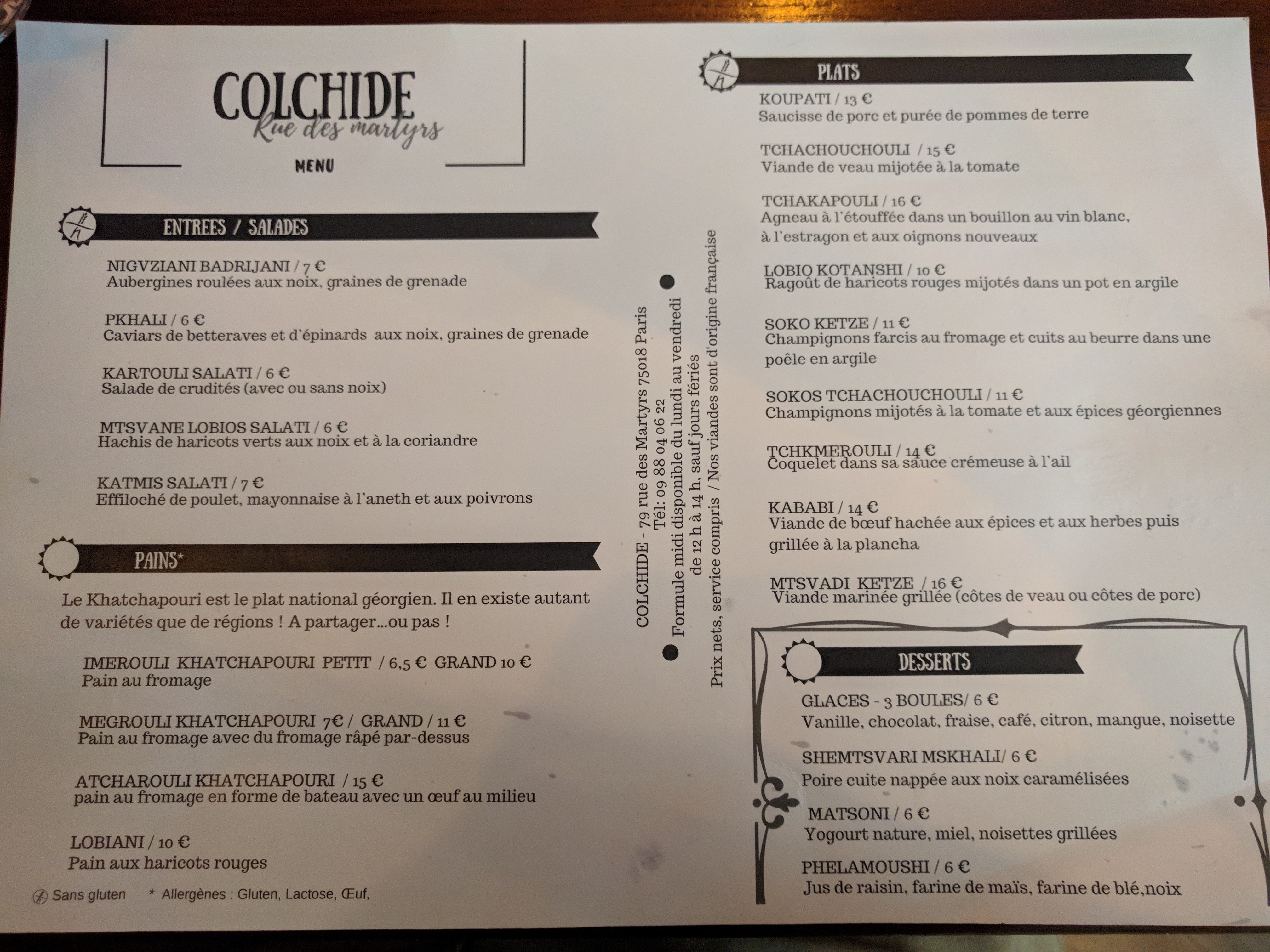 Nous avons adoré le moment passé à Colchide. Le lieu est chaleureux et on y mange très bien pour des prix raisonnables. Le katchapouri est délicieux !