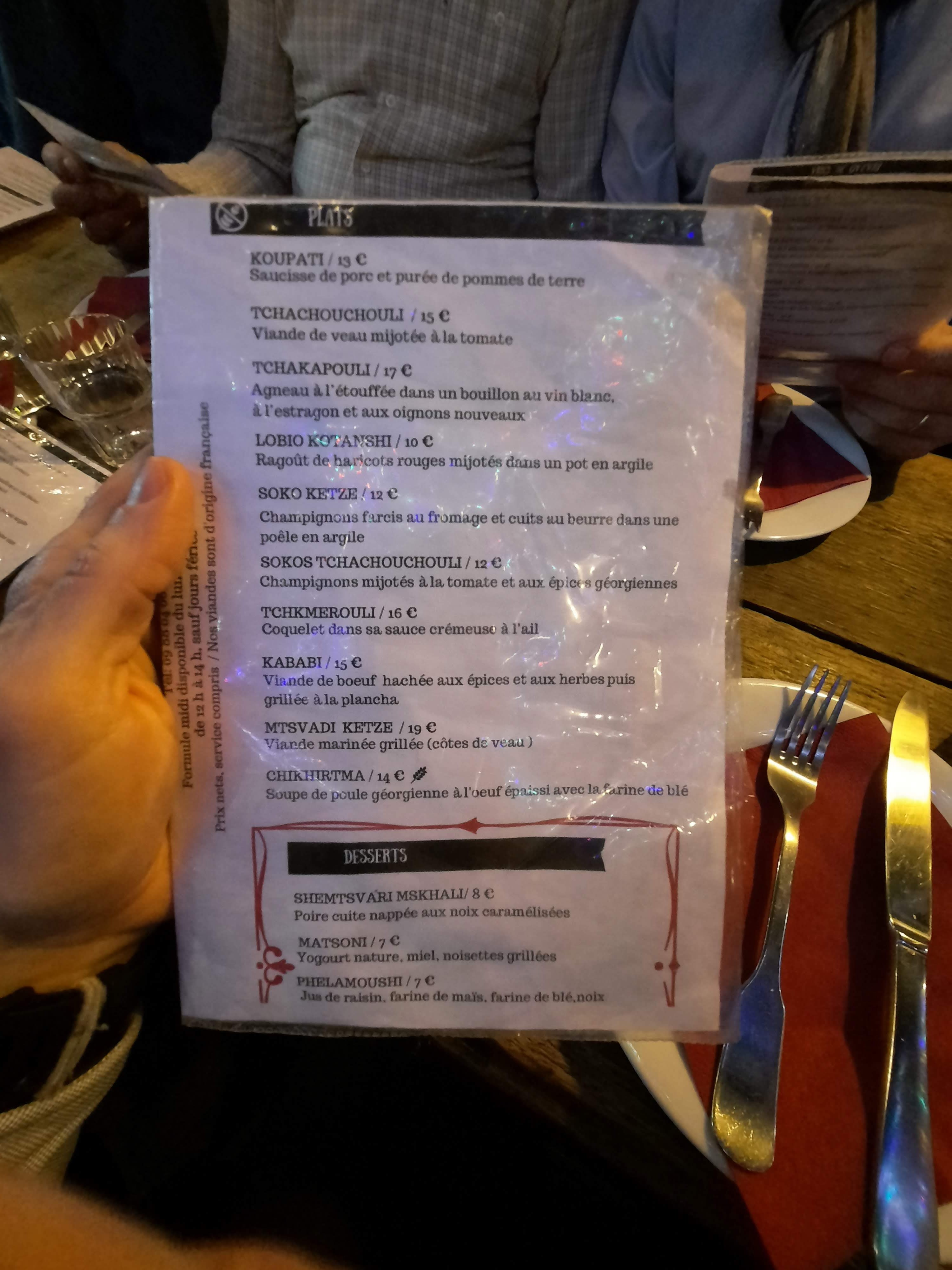 Premier resto géorgien que nous faisons après notre séjour il y a plus de 2 ans et ... ça fait du bien! Bonne cuisine, prix corrects et on re découvre les saveurs de notre voyage (roulés aux noix, kachapuri, haricots cuits en pot, etc). Notre seul regret: pas de khinkalis!