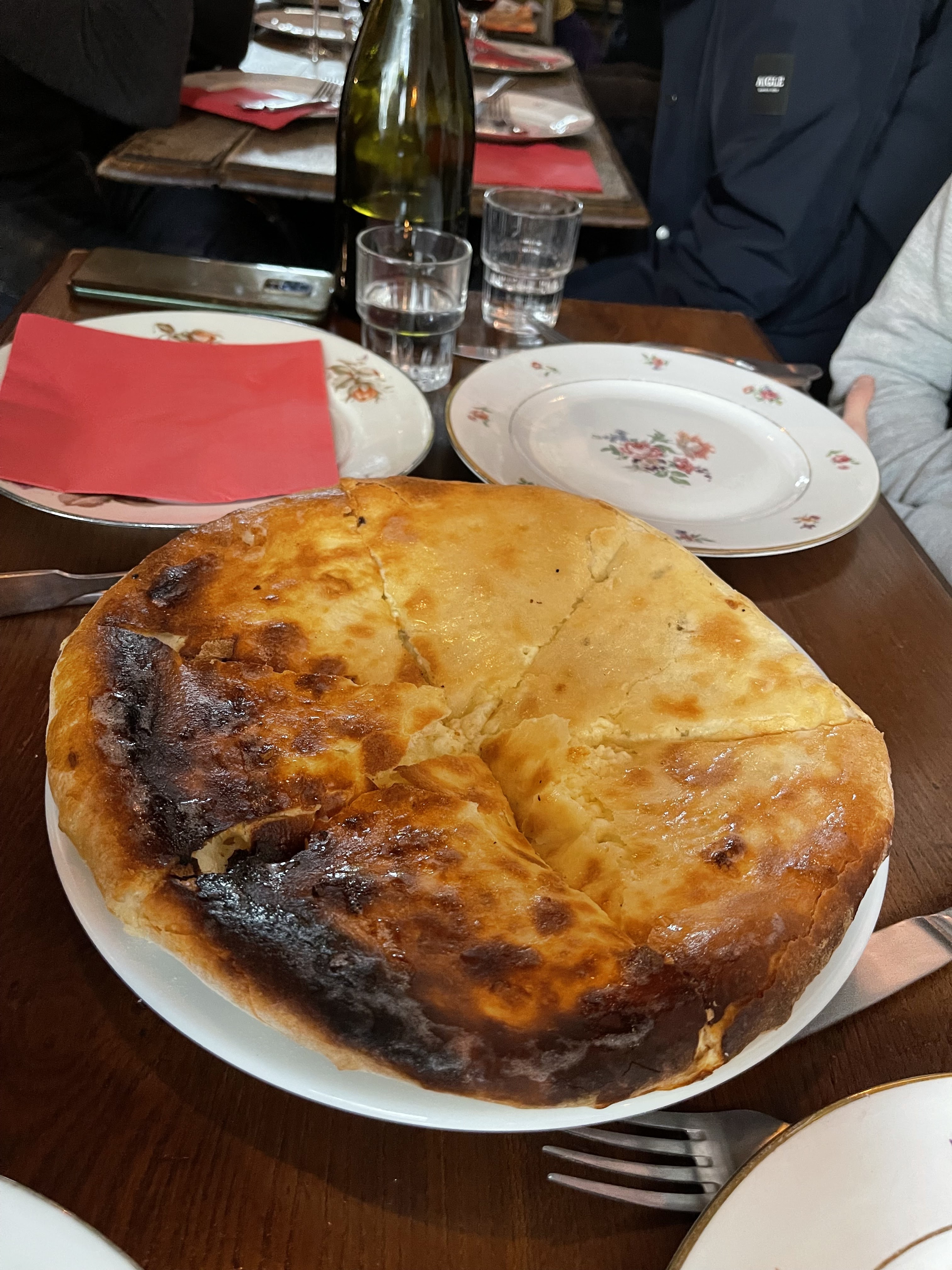Nous cherchions un restaurant typique Géorgien dans Paris Avec les avis précédents nous avons été aiguillé dans ce restaurant Service efficace de deux jeunes très bien conseillé Ils ont une très bonne cave de vins du pays ( magnifique vins ) Seul bémol pas de Kinkali :( Nous avons pris le pain au fromage suivit de petit entre froide aubergines aux noix et betteraves puis soupe de viande au beauf et grillades et pour finir gelé aux raisins et alcool fort Un peu cher au final mais nous sommes à Paris 😅 Bref n’hésitez pas et foncer
