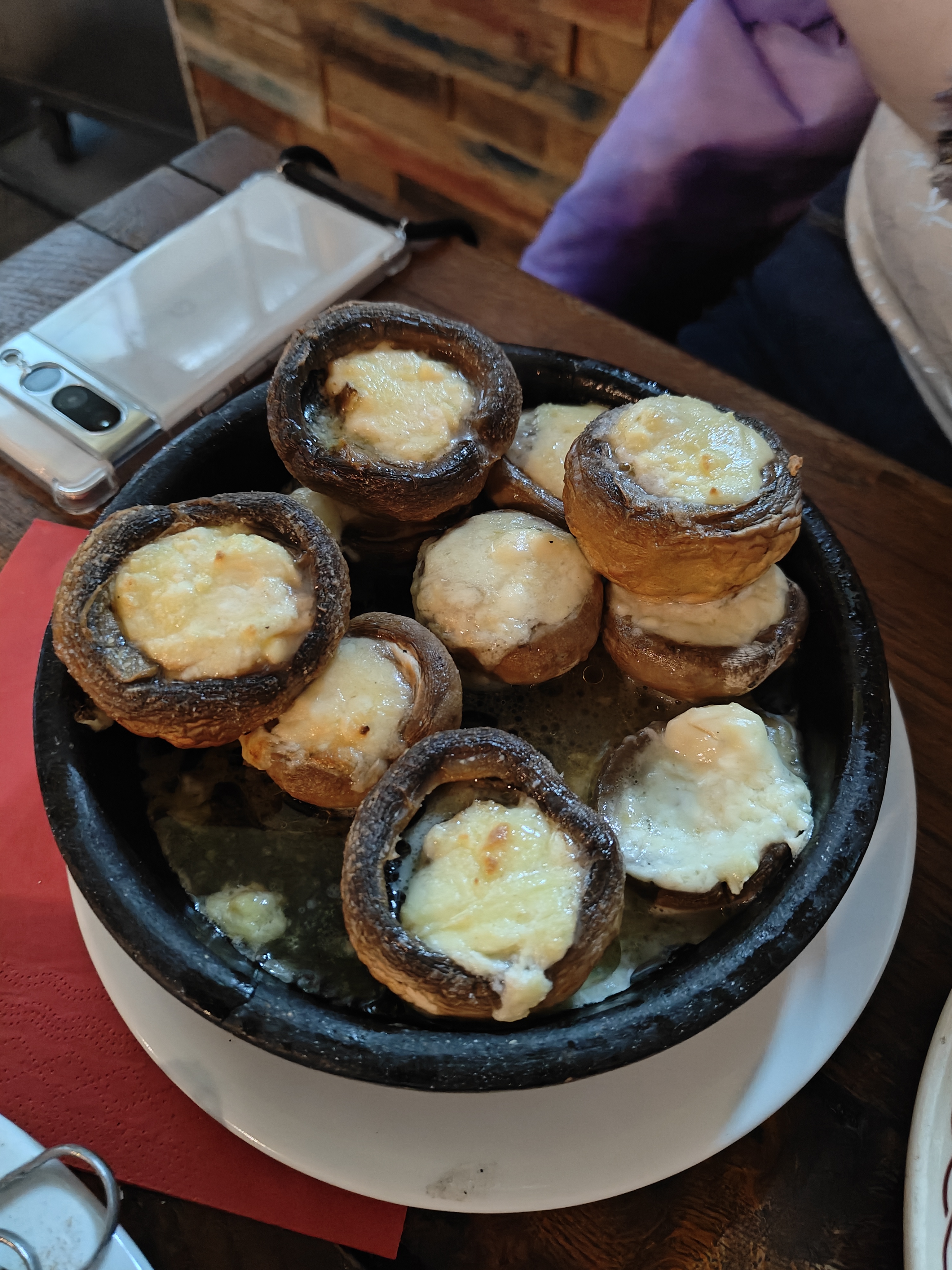 Bon ambiance, entrées très bonnes, pain au fromage bon, mais j’étais déçu par le plat. Un peux cher vu que le portions sont pas trop généreux