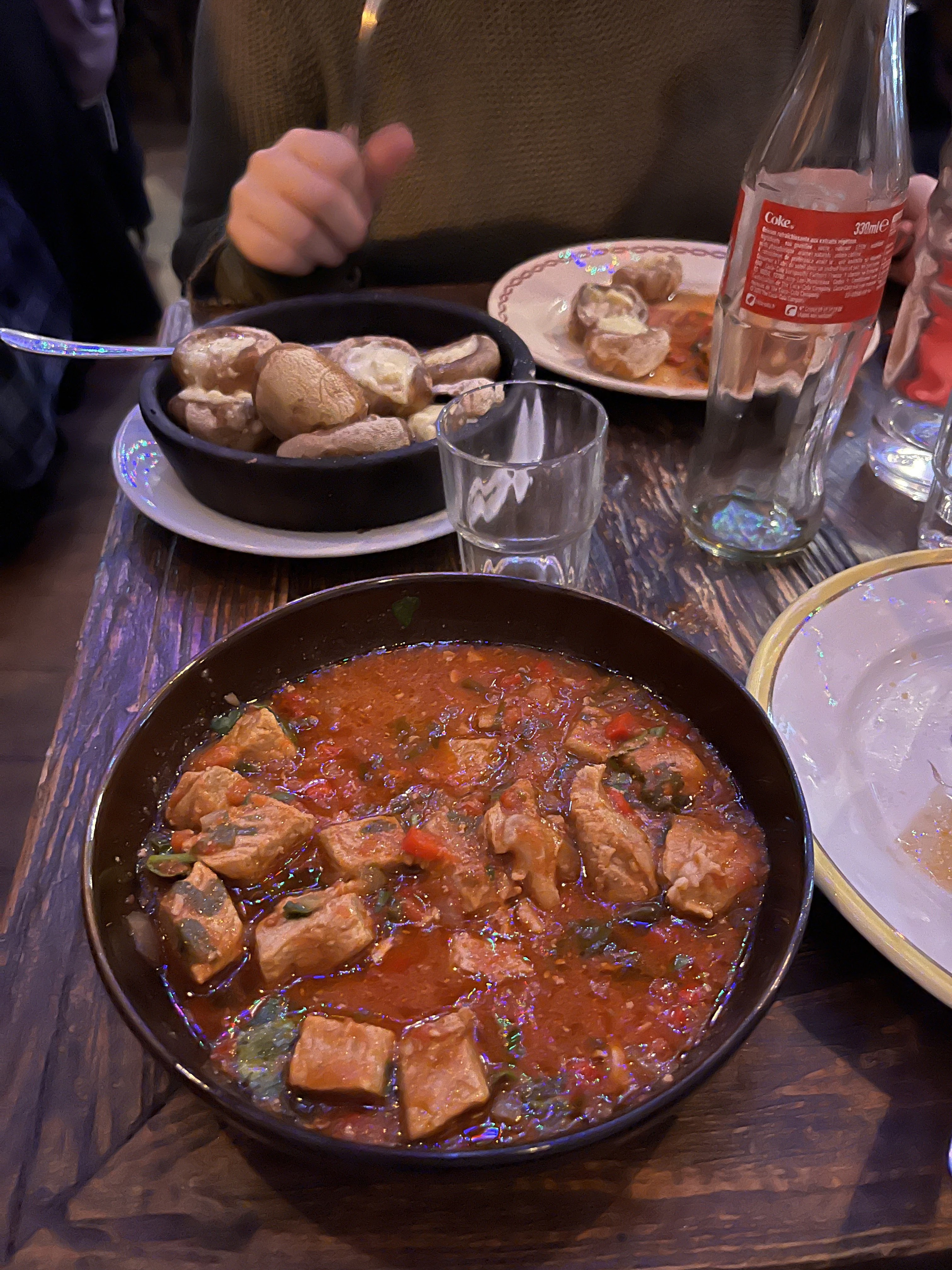 Surcôté.. Vraiment déçus par l’agneau au vin : sans accompagnement, des petits bouts qui se courent après et qui baignent dans la sauce pour 17 euros. Les plats ont été servis alors que nous n’avions même pas eu les vins, il a fallu relancer et attendre 5/10 min alors que les plats refroidissaient pour espérer pouvoir manger et boire en même temps. Les serveuses n’ont pas été très agréables ni souriantes, clairement débordées par le nombre de tables. C’est plus une question de goût personnel mais nous n’avons pas apprécié le pain traditionnel fourré au fromage. Le ragoût de haricots rouge est bon mais il ne coûterait pas grand chose de proposer un accompagnement de riz pour équilibrer les textures.