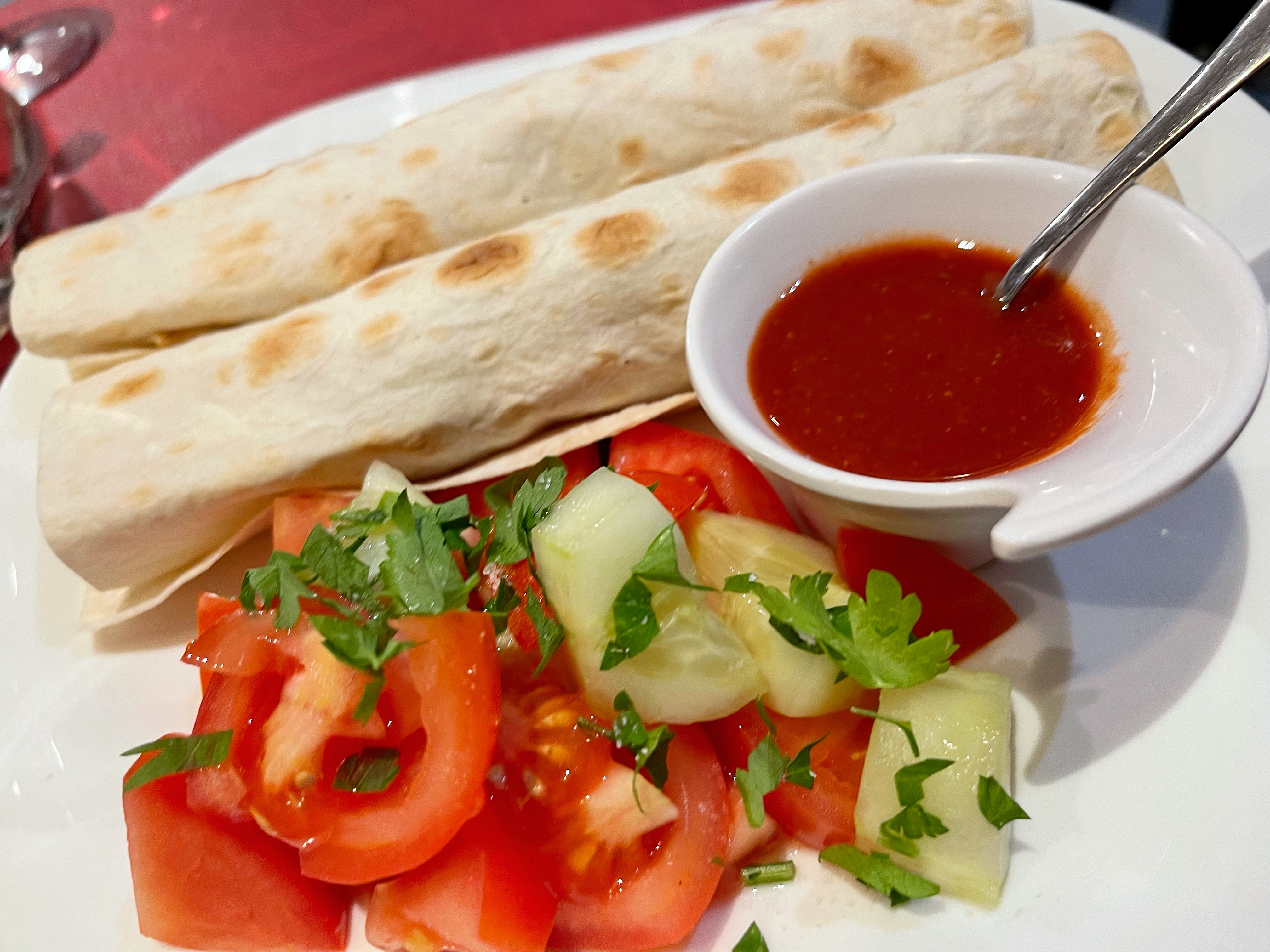 Nous avons partagé nos plats entre nous facilement. Tout était délicieux. Vraie découverte de la cuisine géorgienne : excellente surprise. La serveuse était souriante, chaleureuse et efficace. Je recommande !