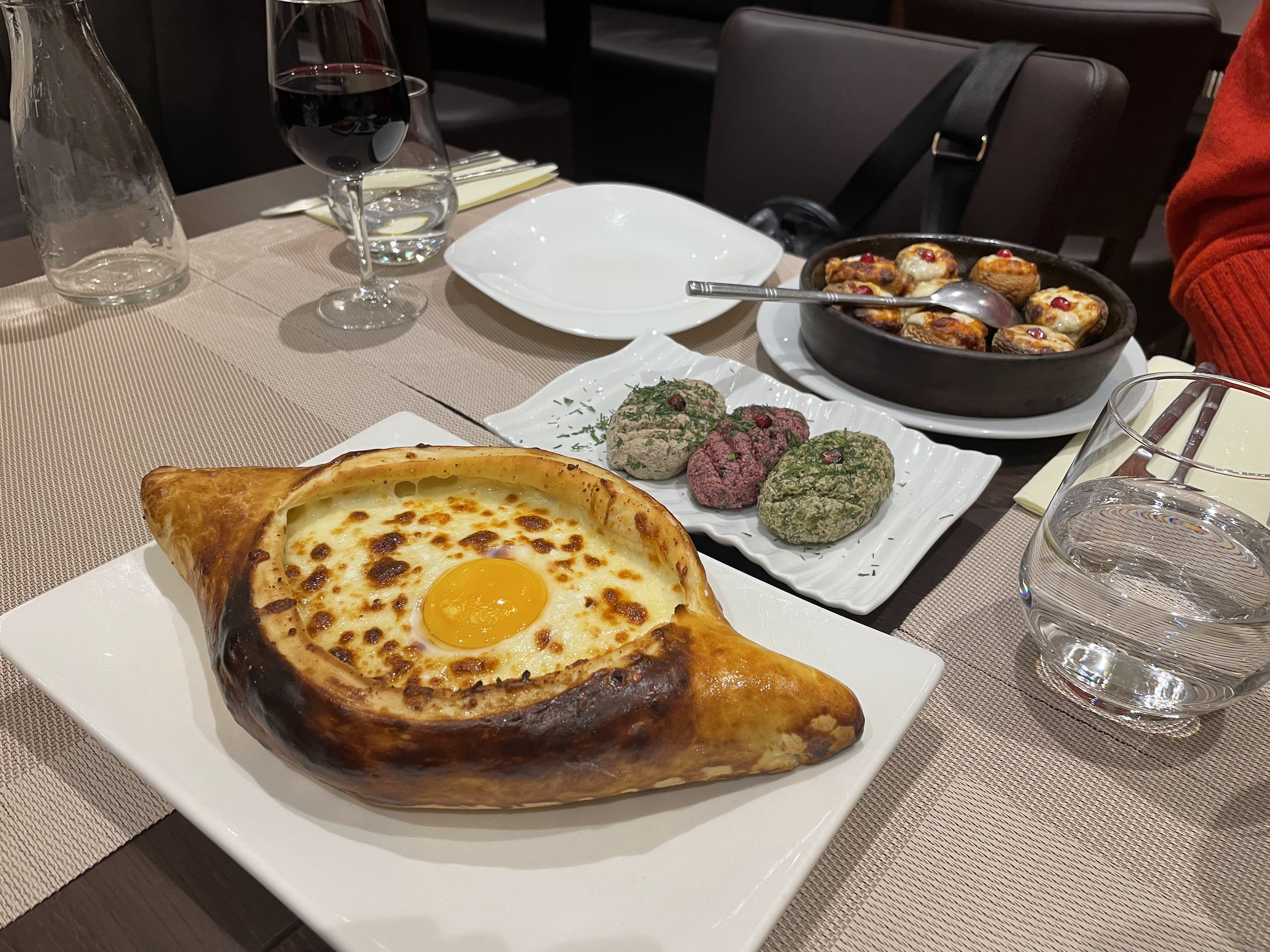 Ayant eu la chance de visiter la Géorgie lors d' un Rallye en 4x4, c est un plaisir de retrouver la cuisine typique de ce merveilleux pays. Tout à fait conforme à ce que j'avais découvert à Tbilissi en 2021. Une parenthèse dépaysante. Et comme c'est servi copieusement, on repart avec son petit plat pour prolonger la dégustation. Je recommande vivement.